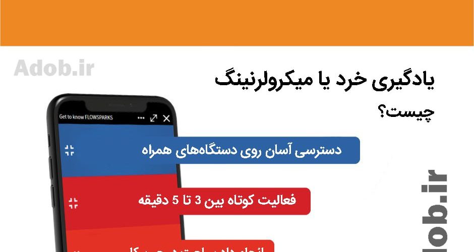 یادگیری خرد یا میکرولرنینگAdob7 اسفند 1401 یادگیری خرد یا میکرولرنینگ (Micro Learning) چیست؟ میکرولرنینگها همان یادگیریهای خرد هستند که در این روش، محتوای ... ادامه مطلب